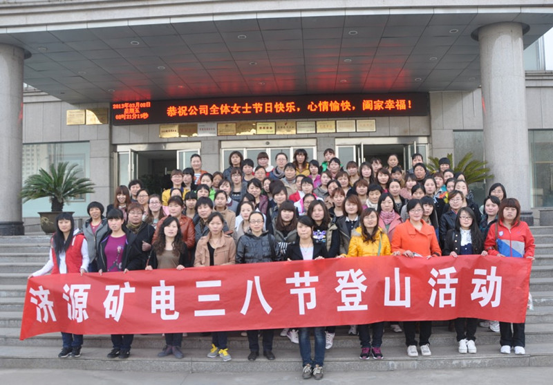為慶祝國際三八婦女節(jié),礦用電器組織全體女職員到沁陽神農(nóng)山進(jìn)行登山活動(dòng)。2013年3月8日早上8點(diǎn),在濟(jì)源礦電公司門口,全體女職員整裝待發(fā),常務(wù)副總王偉對公司全體女士表示了節(jié)日的問候,對辛勤工作一年的同志們表示深深謝意,并對同志們給予了新一年的厚望,同時(shí),特別就出游安全問題作出了指示安排,以確保活動(dòng)順利安全進(jìn)行。